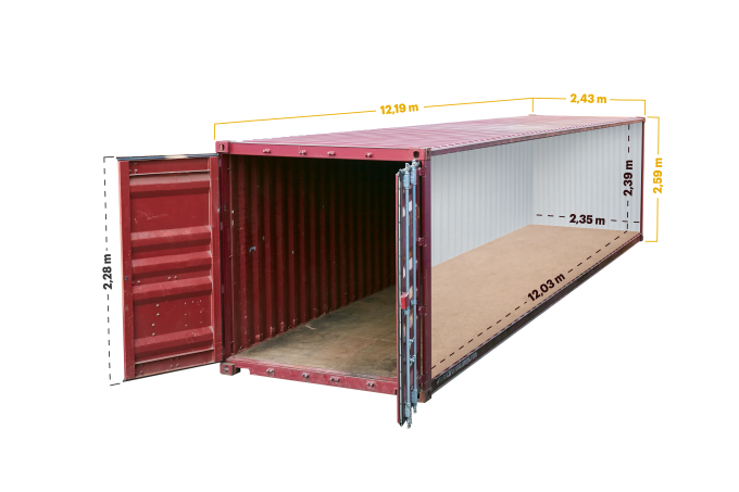 - The open top design makes it easy to load and off-load large and long cargo using cranes.